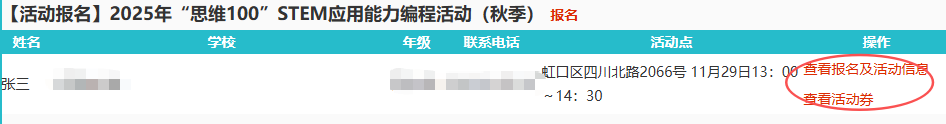 5. 报名成功后返回个人空间即可查看报名信息并下载活动券。请自行下载并打印活动券,届时凭活动券参加活动。