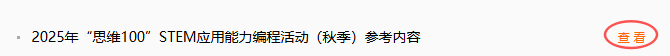 2.找到“2025年‘思维100’STEM应用能力编程活动(秋季)参考内容”,点击“查看”,即可查看本次活动的参考内容。