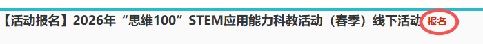 1.个人空间中选择“2026年‘思维100’STEM应用能力科教活动(春季)线下活动”报名。