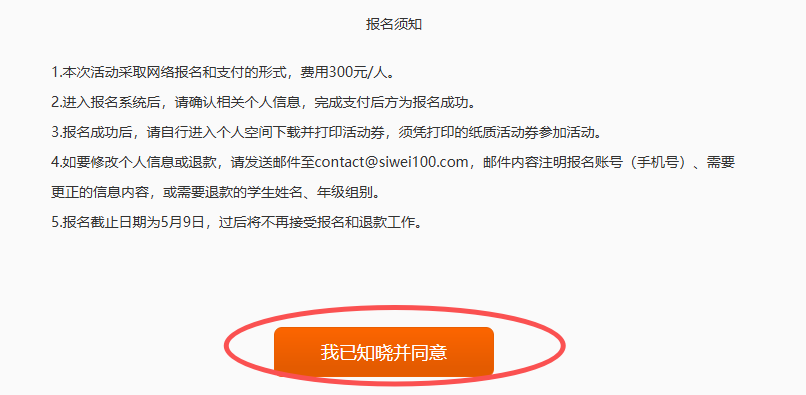3.仔细阅读“报名须知”,了解相关注意事项后,点击“我已知晓并同意”,进入报名系统。